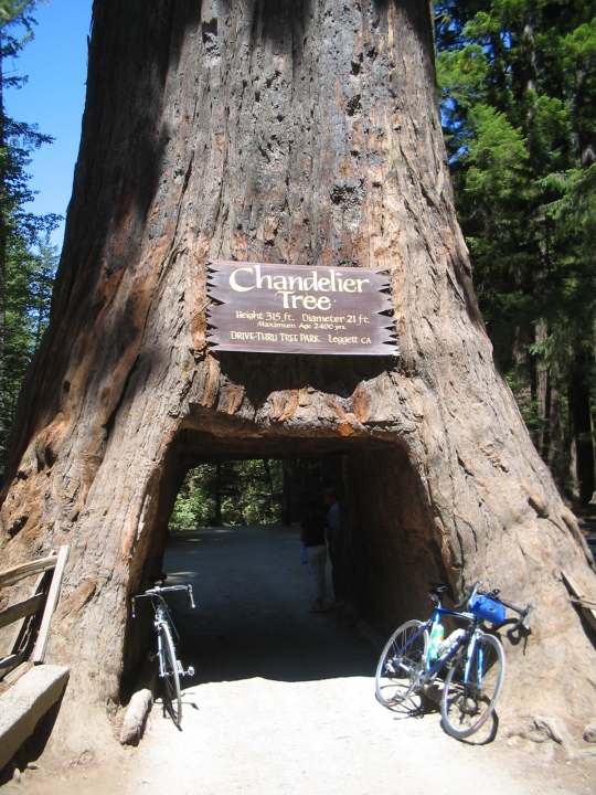 During our day off in San Francisco, Chris had apparently proposed to Mandy, Athan's older sister, both of them Sierra '04 riders. Someone asked Athan how he felt about it, and he said he was happy. I was glad, since I like all three of them. The newly engaged couple was still on the coast and able to join us on our ride from Mendocino to Richardson Grove State Park. I considered it a pleasure and an honor to ride with Chris. The day turned out to be a lot tougher than expected though, especially with an unexpected six mile uphill, right in the middle of the day, that seemed to take it out of everyone. At one point, I saw a sign for a drive-through tree. Greg and I both pulled off the road to go check it out and found out that it cost $3 to bike through. When we pulled up to the booth though, the old man running it told us that we could go on through as long as we didn't say a word. It was fun to ride a bike through a tree, especially when all the suckers in cars had to pay $5. Later we told a few people about it, and it turned out the whole team went and no one got charged.