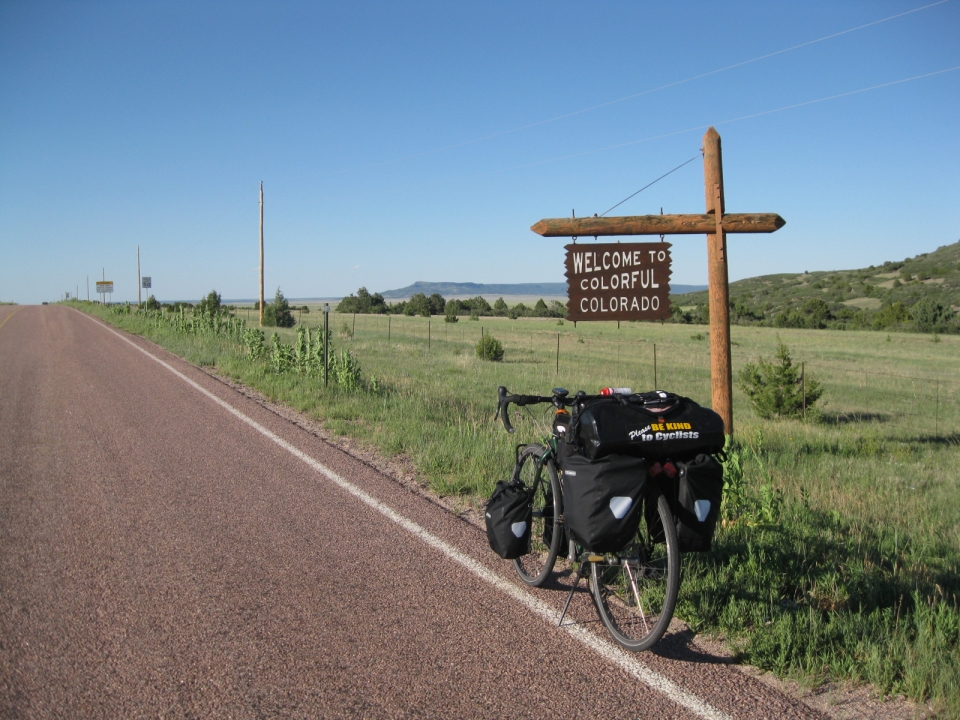 Crossing a second state border in the same day was a great feeling. In one day, I went from high plains to near-desert to the beginning of the mountains. Only about 1/4 of a mile past the state border, I made it out of the canyon and got my first broad look at Colorado. Nothing but flat plains as far as you could see. Rolled into Branson, a town of less than 200.
