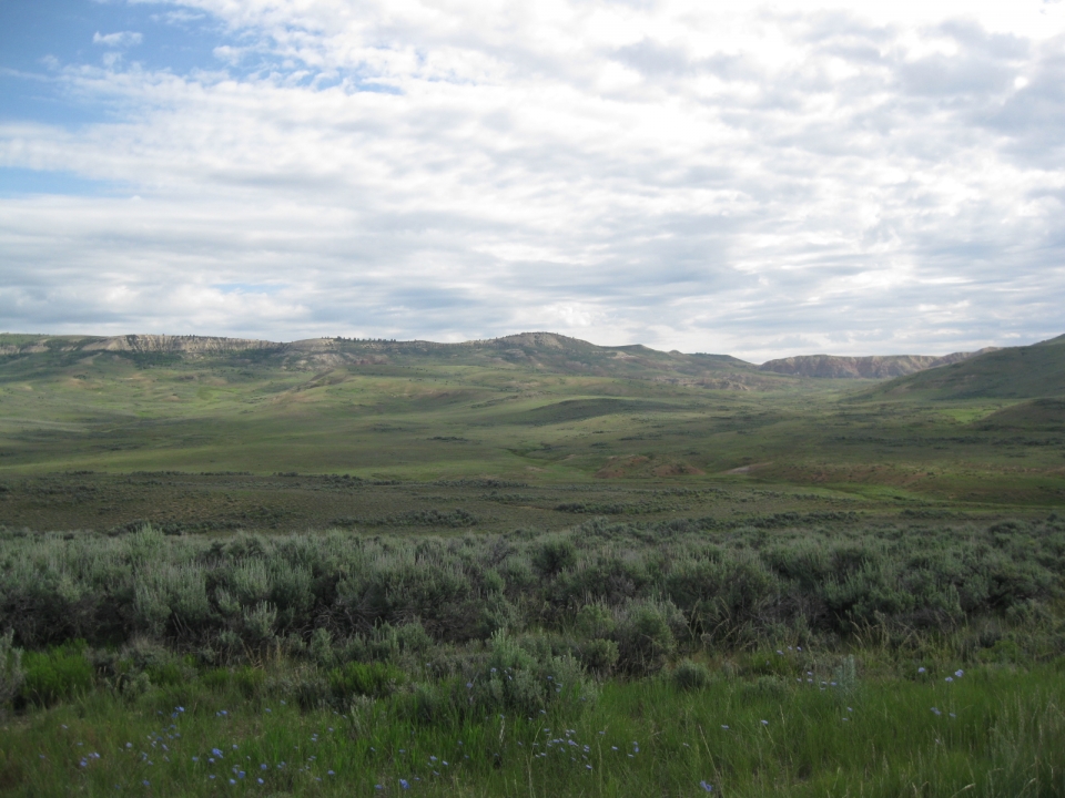 After Fossil Butte, most of the day was flat, slightly downhill, and windless. A lot like yesterday, actually. Right at the Idaho border, wind, hills, and rain picked up. The rain was barely ever more than a sprinkle. About eight miles later, the rain stopped just as I got around the hills and it turned into a nice day.
