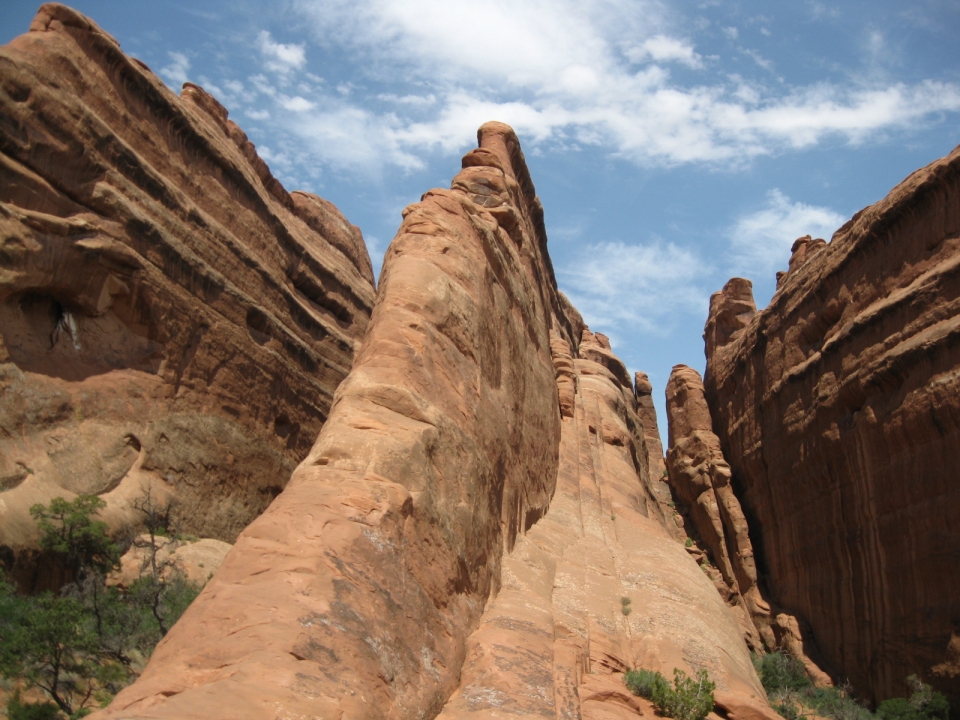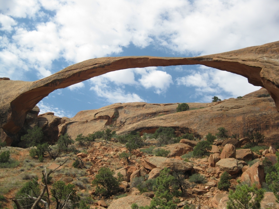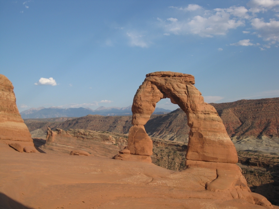 The Belgians were two young ladies, both English majors, visiting the United States after finishing college. They had a car and graciously offered to drive me to the Delicate Arch trailhead that evening. I gladly took them up on it, as I didn't want to pedal Freebird on that road again. The three of us hiked to Delicate Arch together. I tried to imagine what is was like for the first person that saw it, not previously knowing it was there. I imagine it was something like a religious experience.