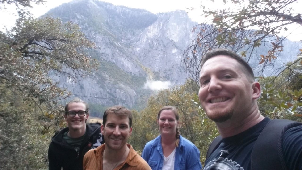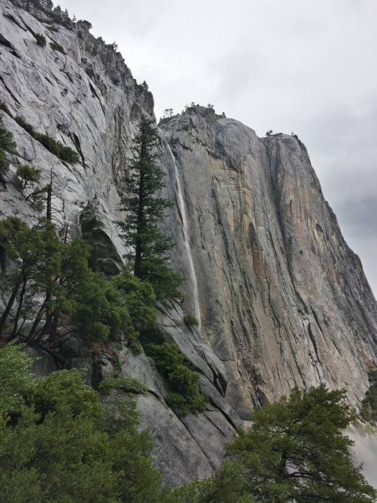 The forecast for the day was in the 50s and rain, all day. No one in my family is from anywhere cold. This was intimidating to us. My cousins and I had resolved to hike up to the falls from the valley floor, but a contingent from the generation above us wanted to hike to the falls from somewhere else. Their route involved hiking twice as far, but with no climbing. In order to meet us at the top, they planned to start extra early, but the morning of, it was already raining, and they called it off. My cousins and I were in it alone. This was our hike!