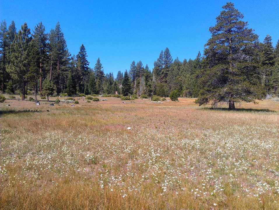 The road turned away from the lake, which always means uphill. It wasn't steep, but the hill went on for probably six or seven miles. Less than pleasant. At the top would be Spooner Lake, around which I was warned there would be a lot of traffic. But you know what? There wasn't much. There were a few nice meadows instead.