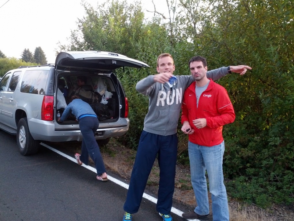 Headed down the highway and into Portland, where we'd meet up with the other van. We were making an attempt to get there early, since we figured on traffic in Portland in general (a big city at 7:30 on Friday night), and a solid amount more around the big exchange point. It was a good thing we'd planned for an least an hour of down time, because upon arriving at the exchange, it took us 45 minutes to get into the parking lot. Read that again. I'm not exaggerating.