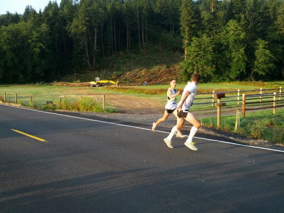 The entire rest of the run was a grind-it-out. Normally, that term is reserved for doing slow, tough miles, often uphill. But somehow it still applied to this situation, even though I was moving blazingly fast. It was a different kind of endurance battle. My heart racing, my core working overdrive, and moving my feet with that kind of speed. For that long. I kept looking at my watch, watching each quarter mile tick away, getting closer to the end of my leg. And that's when I noticed something.