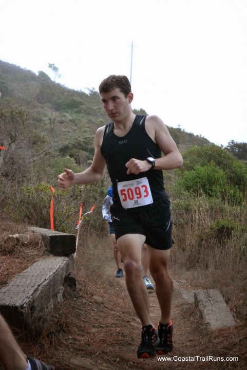 Not much later, the second-place guy passed me on the downhill. We exchanged a few pleasantries. I tried looking on the bright side of things, even pointing out to him that the fog had fully dissipated, and we were being treated to a gorgeous view of the ocean. "That's what I live for!" was his response.