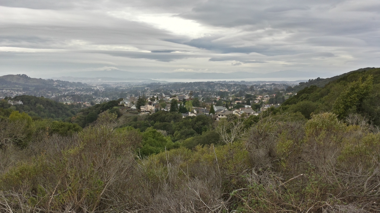 By the time I left campus, I had already shed two layers and was now down to just a shirt. Getting past the campus puts you almost out of civilization's grasp, halfway up the hills surrounding Berkeley. I'd been on that hill before and I knew what a stunning view there is of the entire San Francisco Bay, but alas, it was not a clear day, so today there was no view.