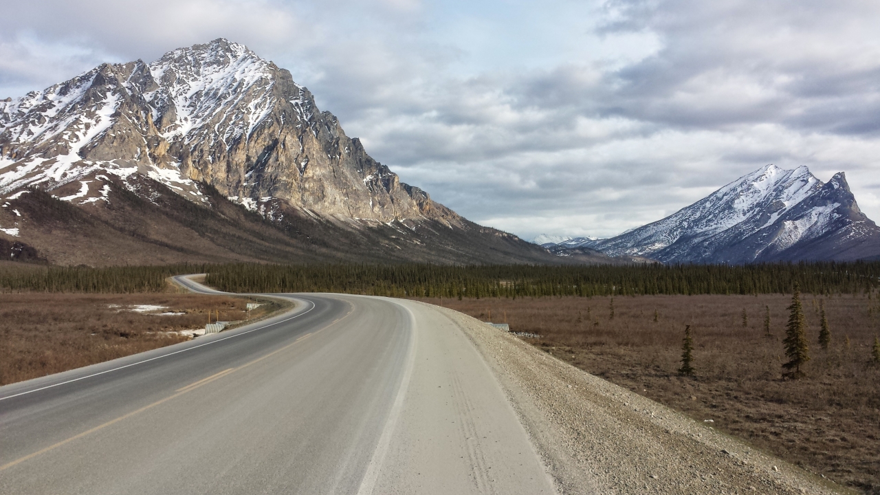 The most intimidating thing about the Brooks Range is that I could see it 150 km away! Bernd and Sabine had told me that the road is never too steep, and I knew it creates a weather barrier. On the other side, it would be nearly 10 C warmer. I eagerly pedaled on.