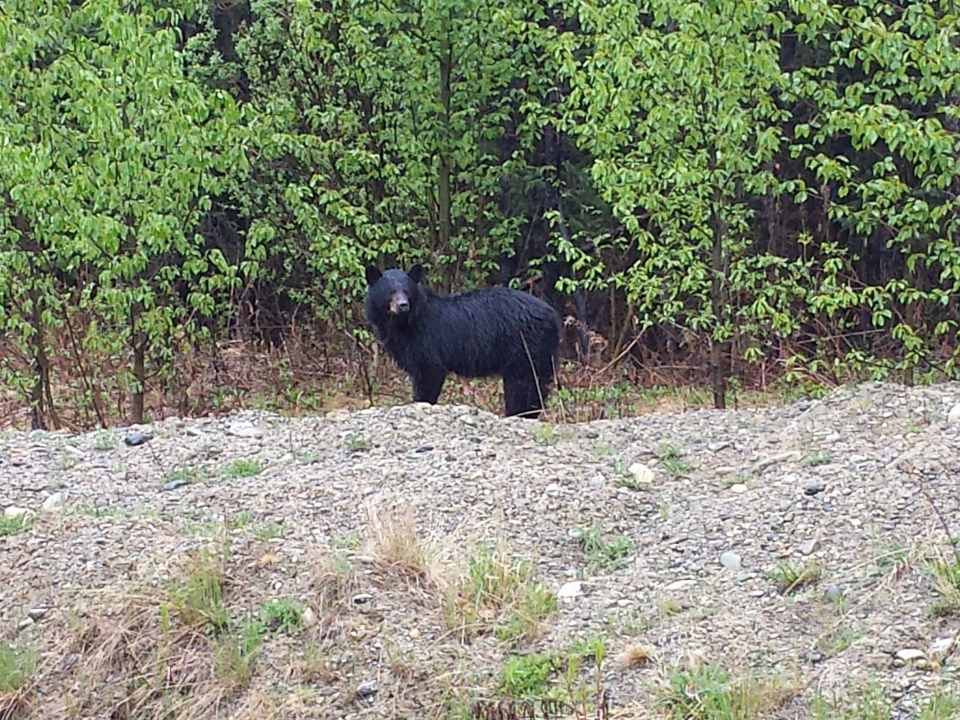 Not much later, I saw my first bear of the ride. A black bear, just hanging out on the side of the highway. Black bears are generally the shyest and least aggressive, but I still didn't want to take the chance that a bicycle would make it scared or trigger a chase response. So hit my brakes and did what I've been told to do if you see a bear while hiking.