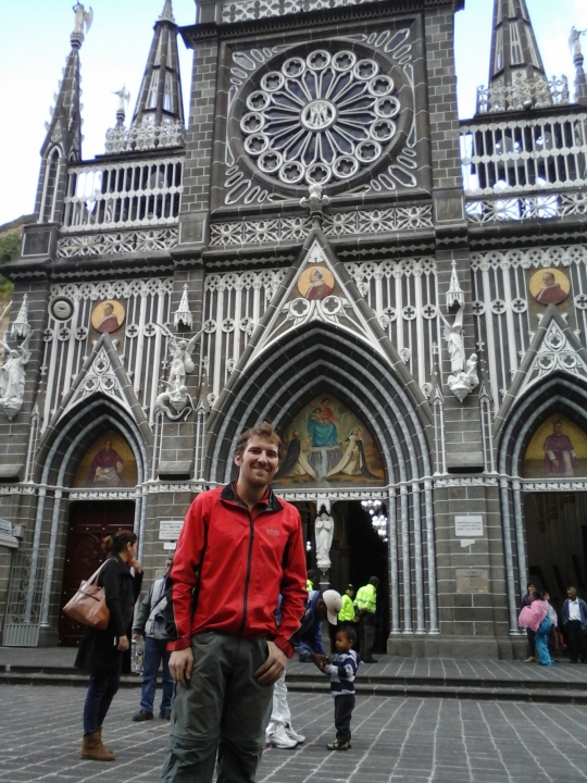 Once I'd had a shower, Oscar and I took a bus to Las Lajas, a famous church just outside Ipiales. On the way, Oscar explained how he and his brothers used to run to the church and back together every day, about 7 km each way, down and then up a steep hill. His personal record for the 7 km uphill was under half an hour. I don't know if I could do that!
