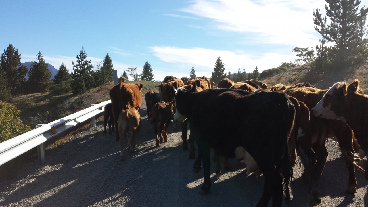 Only 10 minutes outside of Cochrane, I could hear mooing. A lot of mooing, constant mooing, in various pitches, louder collective mooing than I'd ever heard before. What was going on?