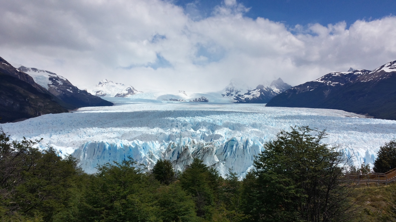 The Perito Moreno glacier is one of only two advancing glaciers in South America. Its front end is in a lake, and it pushes against the shore, damming one side of the lake from the other. This can cause one side of the lake to rise as much as 30 m above the other, at which point the pressure becomes too great and the glacier ruptures, breaking the dam and allowing the water to flow through.