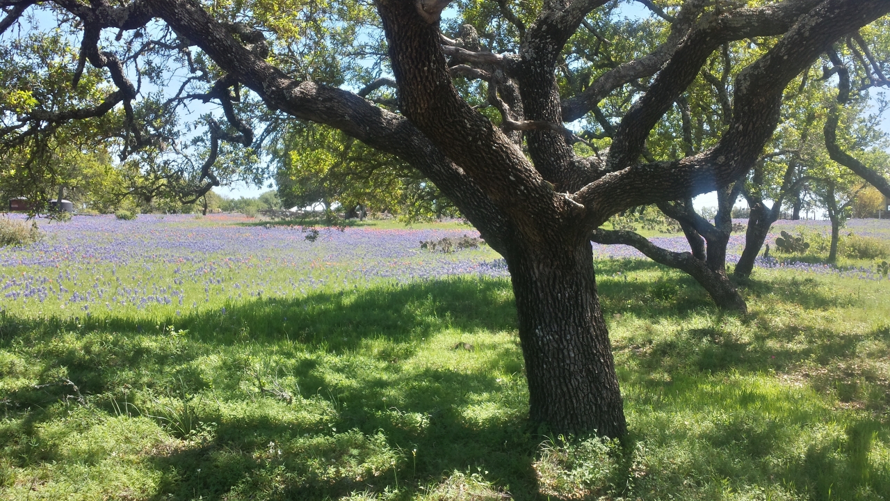 Sure enough, it was a clearing in the woods at the bottom of the valley, so packed with bluebonnets that blue was the only color you could see. At a glance, it looked just like a stream lazily meandering through the hills.