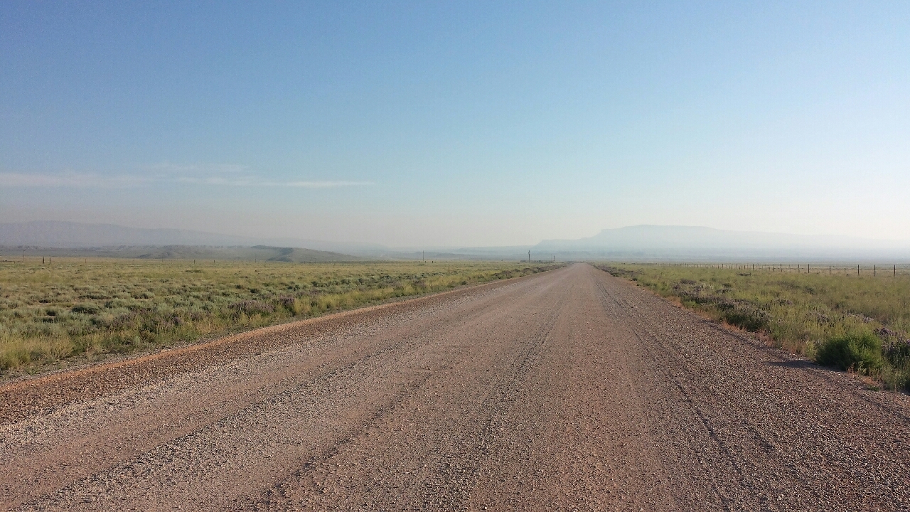 Not long after crossing the Wyoming border, I was back to a gravel road, but a decently maintained one, and extra wide. With virtually no traffic, I rode straight down the middle and put the hammer down. 100 km behind me and I could still move!
