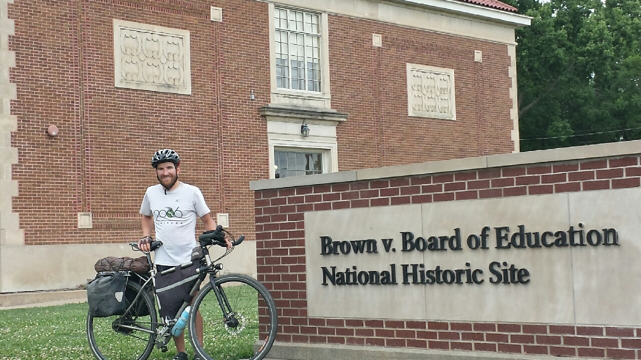 Unexpectedly, I stumbled across the location of the Brown vs. Board of Education court decision. I'd forgotten that happened in Kansas, much less Topeka. Outside was a group of cyclists going for a Sunday ride. They gave me some tips for getting out of Topeka on a bike path, eventually intended to reach all the way from Topeka to Lawrence. They also offered to buy lunch. After that breakfast, I still wasn't even hungry. I declined. Nice folks.