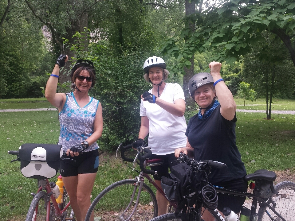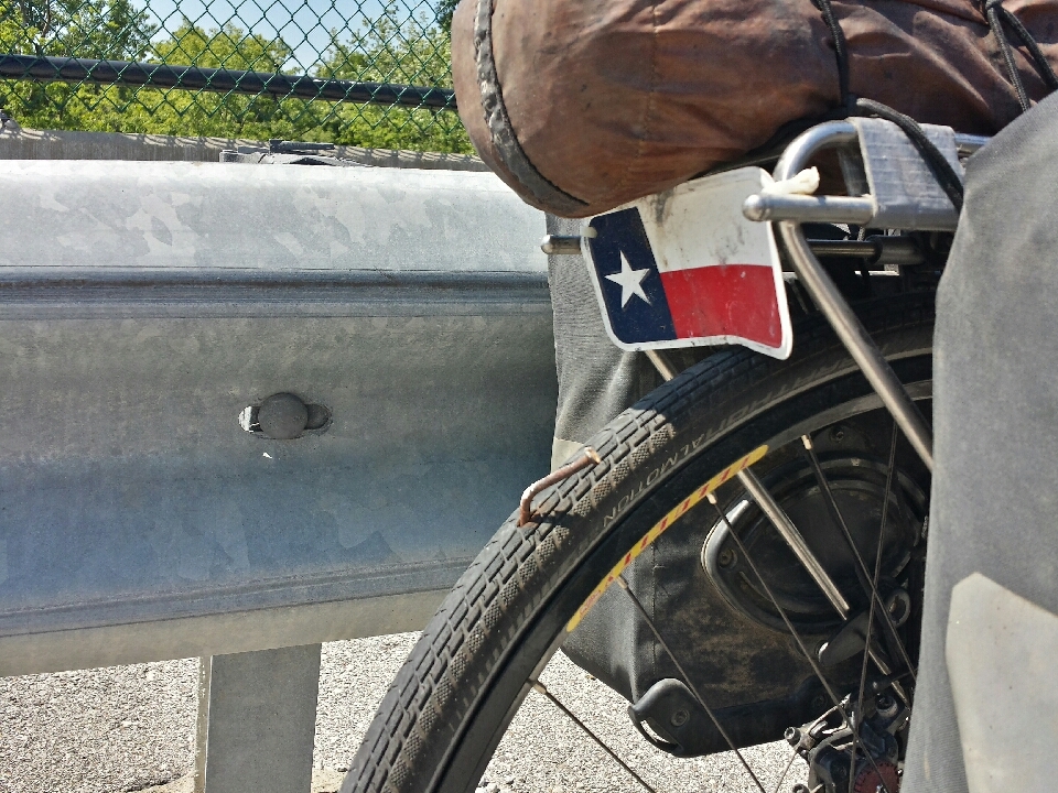 First flat of the tour, something no pucture-resistant tire could've stopped. Less than 10 minutes before getting on the trail. Almost made it. Would've all but guaranteed no flats before St. Louis, since I'd barely see a road before then, and surfaces that aren't shared with big loud metal scary things are generally a lot cleaner.