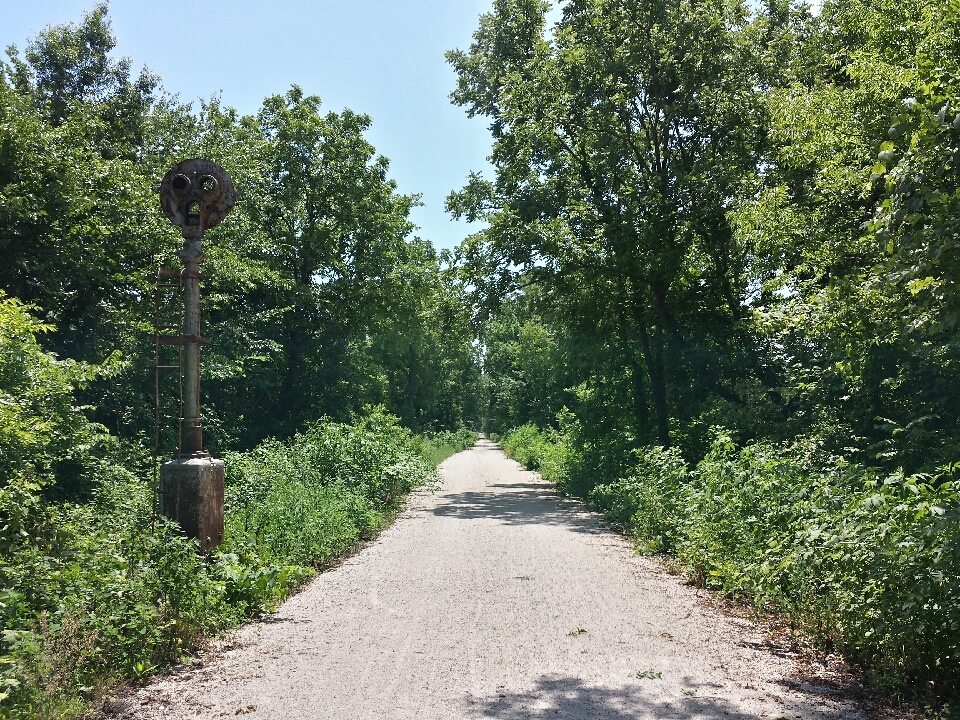 It was past noon when I finally got on the trail, once a railroad, now converted to a hiking/biking trail that nearly traverses the state of Missouri. I'd figured it would take 1-2 hours, but it had taken more than five. Riding in cities slows you down a lot, especially when there's not a direct route for bikes.