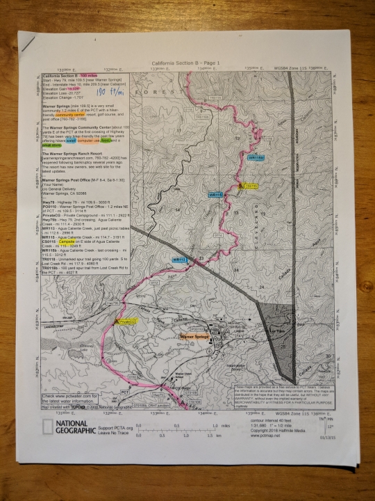It turns out the PCT still lacks a single guidebook comparable to The A.T. Guide, by AWOL (trail name), the quintessential guidebook for the Appalachian Trail. Instead, HalfMile (trail name) publishes annotated USGS maps with hiker points-of-interest added in. They're great and easy-to-read, as long as you can print in color. Otherwise, the line for the trail blends in with the contour lines and is nearly impossible to distinguish. "It needs to still work in black-and-white" is a major rule of good design.