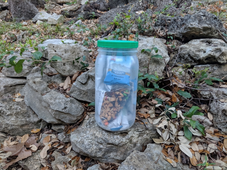 I finally had a moment of clarity when tossing out an empty jar of peanut butter. Something like this could work pretty well. It seals up watertight, and you could use this to eat out of, too. I promptly tried microwaving some instant rice in the peanut butter jar. That didn’t end well. OK, no microwave, and no dishwasher either. So this wouldn’t work as a water bottle/eating bowl. And it’s too small to be my main water bottle.