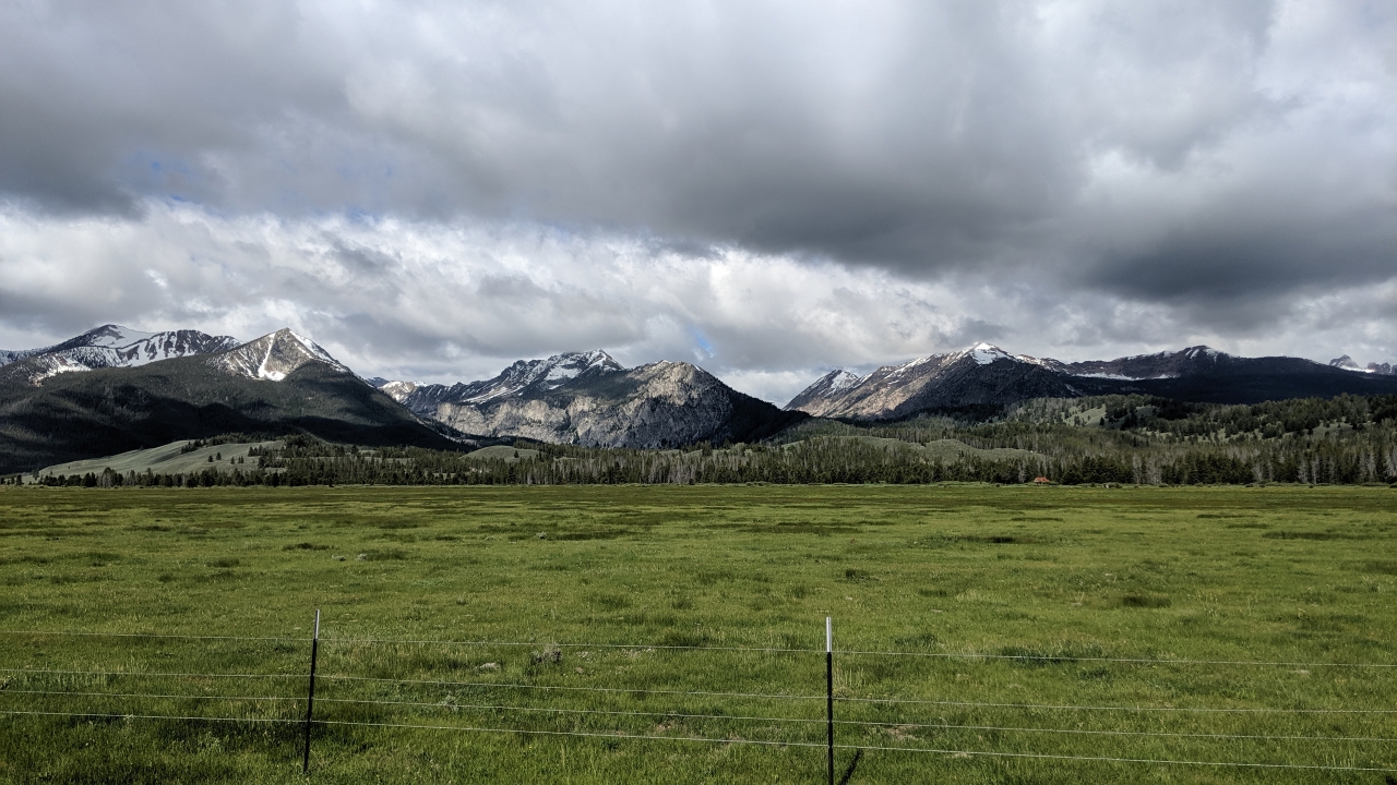 Almost immediately after cresting the hill, the weather cleared and I was greeted with a stunning view of the Sawtooth Range. This is why we do this.