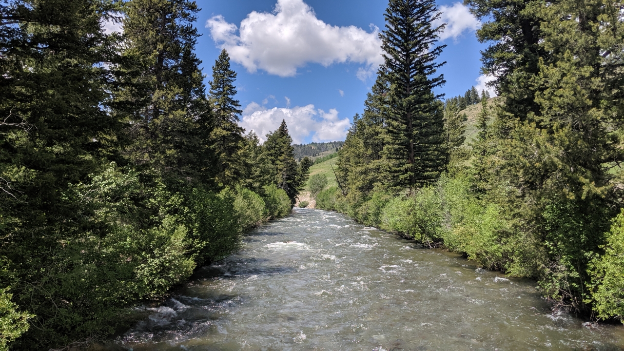Despite the flat, paved path to Ketchum, I made slow progress and got there about half an hour after the bike shop opened. They already had a tire set aside and immediately got to work setting up the tubeless bit. Once they were done, I opened my bag to get my wallet, then panicked. It wasn't there. I'd left it in Hailey.
