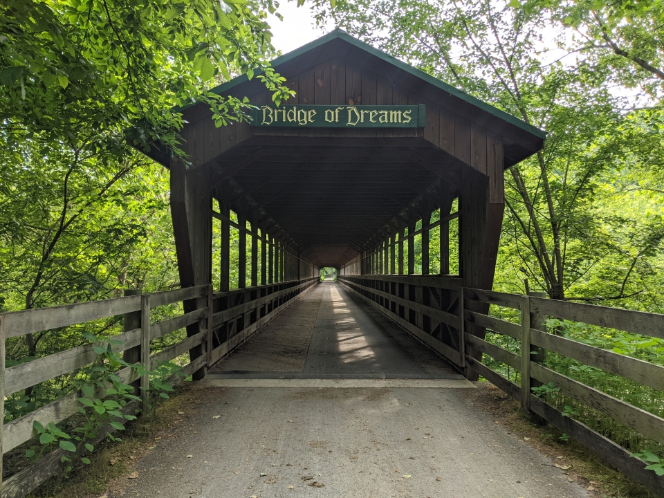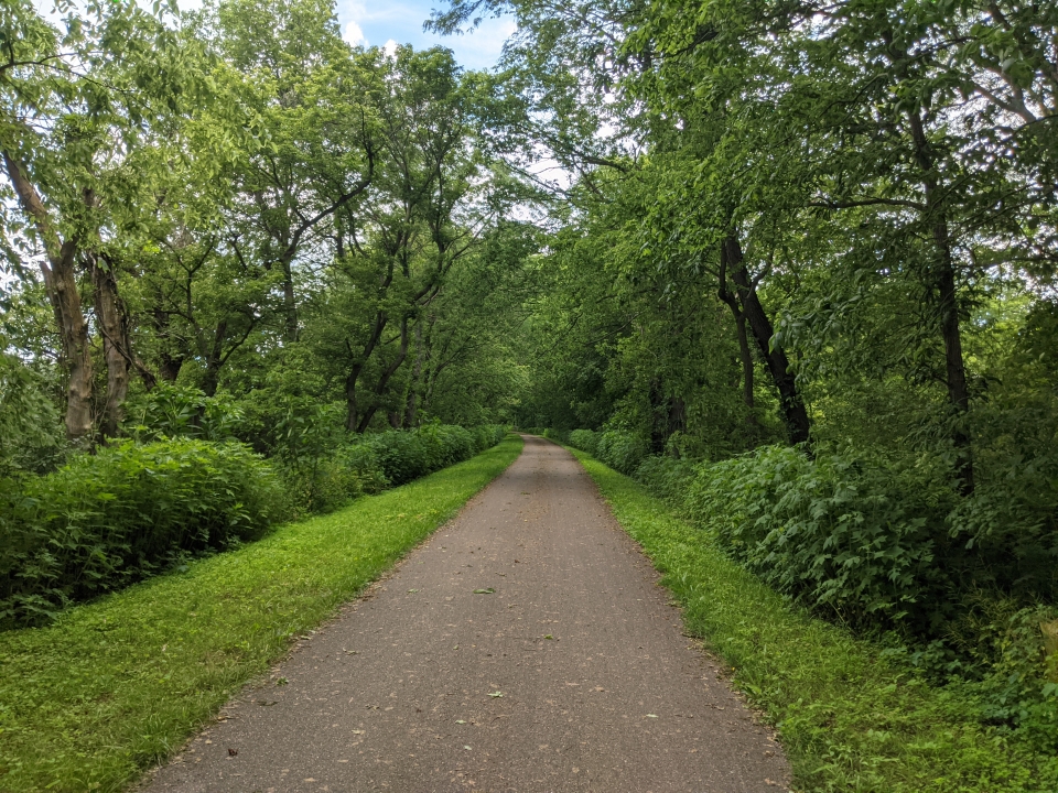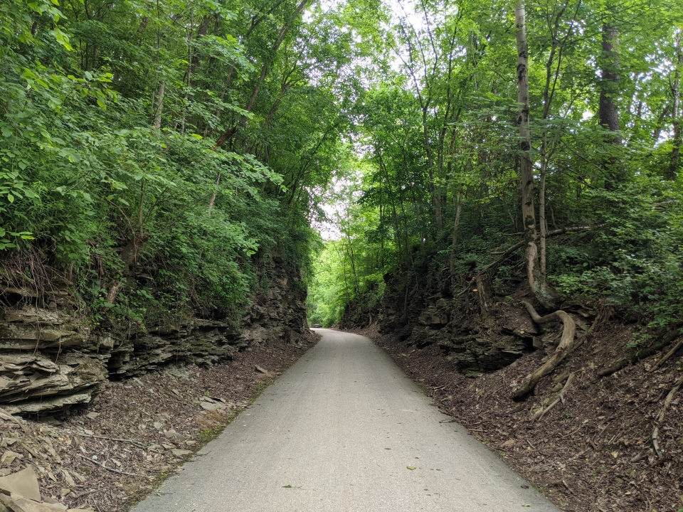 The Ohio to Erie Trail is supposed to start in Cincinnati, but doesn't start in earnest until almost exactly where Bob lived. From there, it was almost a straight shot all the way diagonally across the state. And it's paved. The setting isn't quite as nice as the Katy Trail, but the ease of use and paved surface is hard to beat. Notably, it passes through a town more often than the Katy Trail, which more often passes near them.