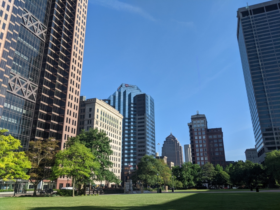 It was a short day the next day, and I knew my host wouldn't be available until mid-afternoon at the earliest, so I doubled back and went downtown to see the state capitol. Somehow, it hadn't registered that Columbus is a big city until I got there. The first thing that pops into mind when I think of Columbus is Ohio State University, and that gives me an impression that it's a mid-sized college town. It's got 800,000 people, which is more than all but a handful of cities in the United States. As such, it takes a long time to ride across it.