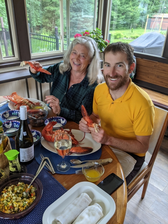 As it turned out, the day I arrived was Marie’s birthday, and she wanted lobster. So we boiled two. Marie and I each got our own. Harold is a vegetarian. This was my first experience eating a whole lobster. I enjoyed it.