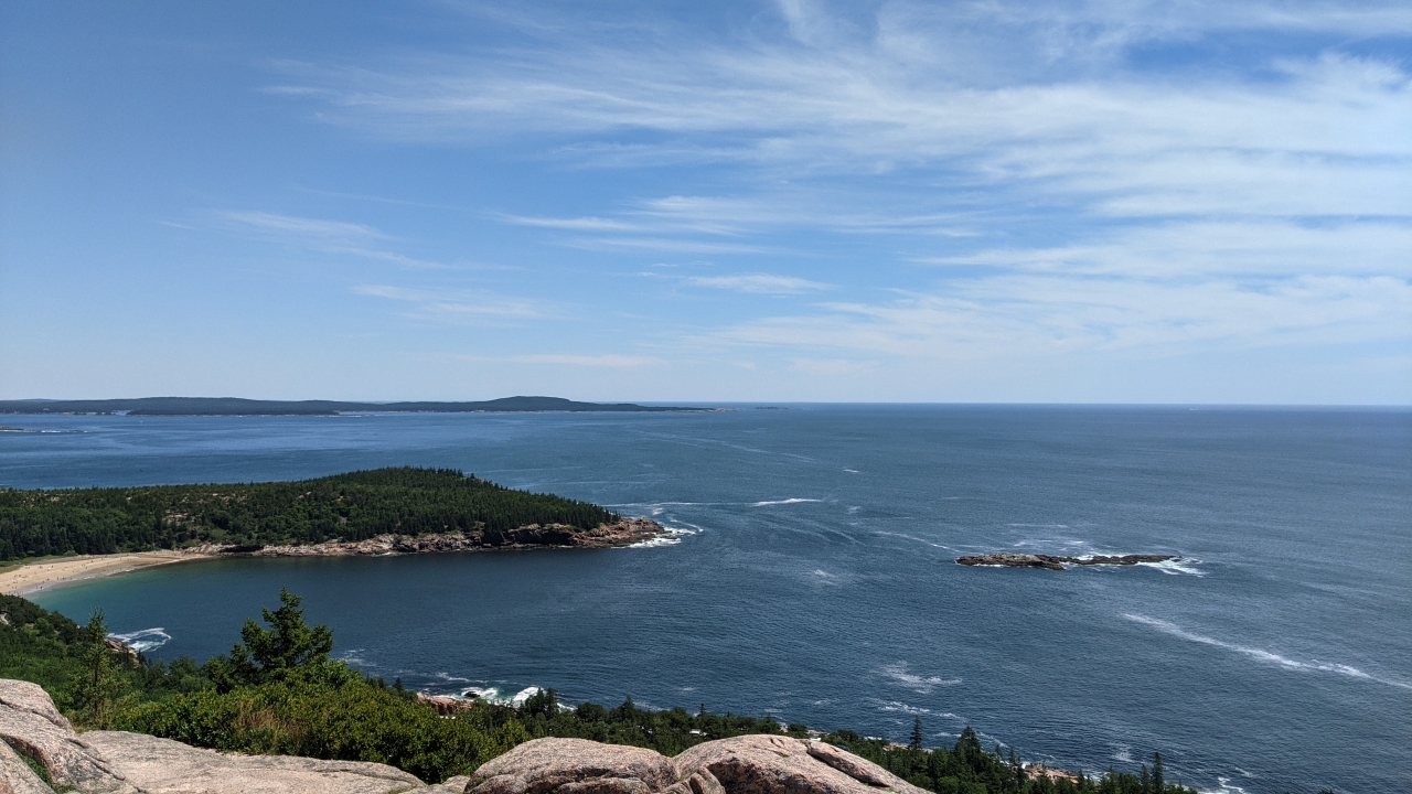 Cadillac Mountain is the highest point in the park, and one of its signature hikes. There’s also a road that takes you directly to the summit. Driving up is so popular, you have to make a reservation to drive your car on a road, and even with this system, it’s bumper-to-bumper traffic, only moving at roughly the speed of a hiker.