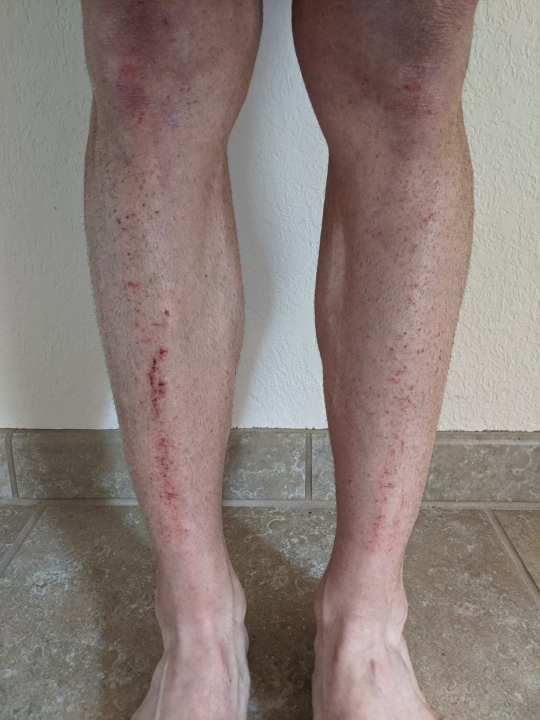 I’d nicked my toe on a rock - not even very hard - and on this steep and slippery downhill, that was enough to make me faceplant onto the rocky trail. I'd managed to put my hands out to break my fall, so nothing hit the ground hard enough to cause injury, but it still hurt - a lot. My hands were both scuffed and bloody, and before I even got up, I could feel a wave of adrenaline rushing through me.