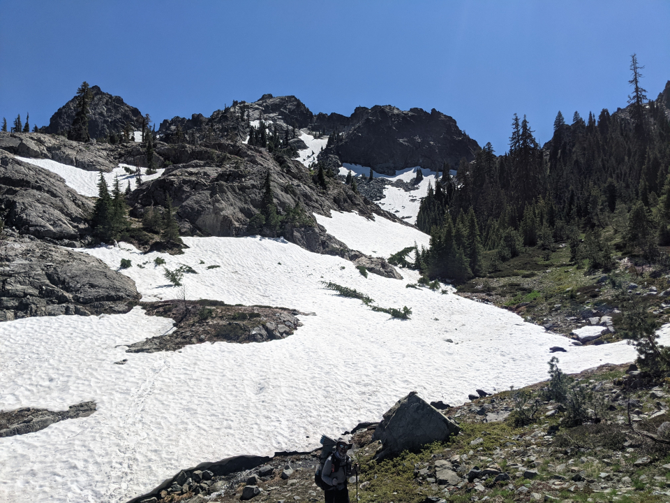 The Russian Wilderness, near Etna, is one of the unexpected highlights of the PCT. It isn’t quite as large and epic as the Sierra Range, but I submit the terrain is equally dramatic. The lingering snow only added to that. Half of the dialogue between Sherpa and myself was simply about how much we were enjoying the hike and the views.