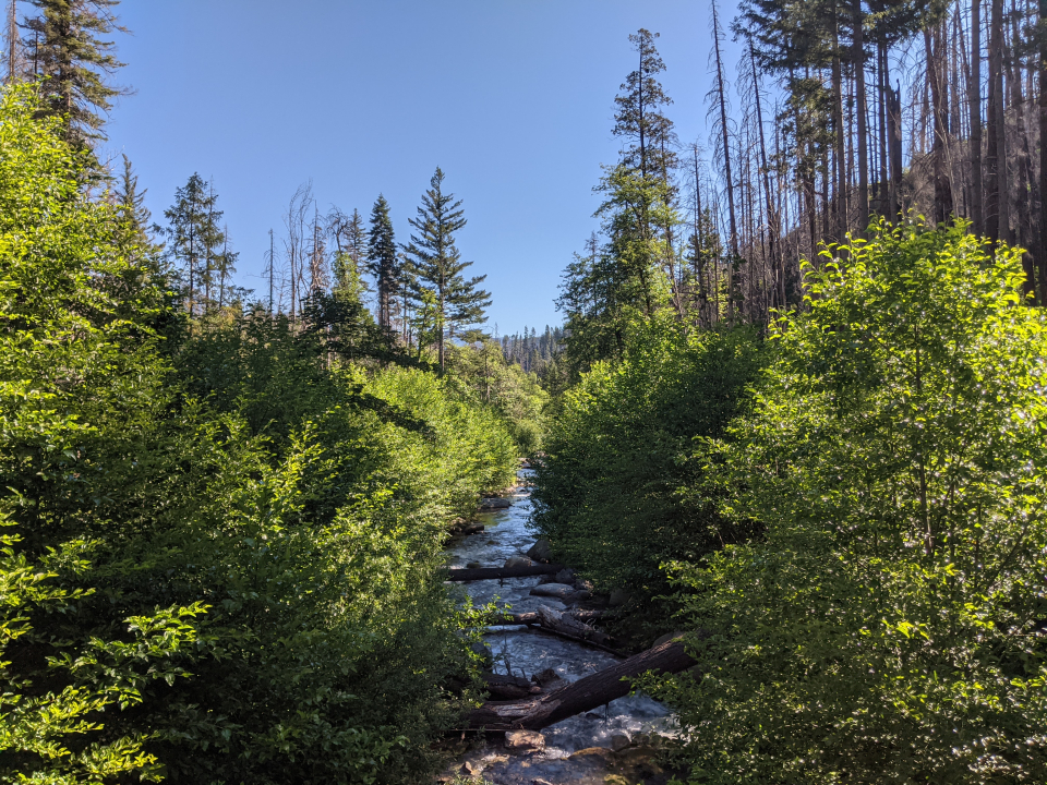 On both sides of Etna, the trail had a lot of downed trees, and on the way down to Seiad Valley, it was completely overgrown. You were essentially shoving your way through the brush for over a mile, often guessing where the trail is supposed to be. I was only praying that none of it was poison oak. The downed trees weren’t gone, either.