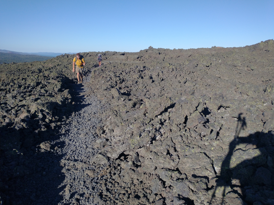 After hiking through another lava field first thing in the morning, we had the easiest downhill I could remember for the last three hours into Big Lake. It was a 16-mile hike, only six miles shorter than the previous day, and we had it done before noon.