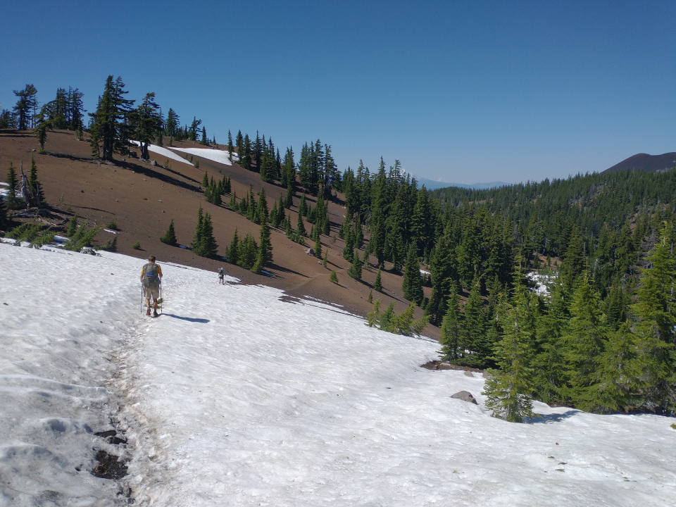 For most of the morning, it wasn’t! The majority of the snow was in flat, wide-open areas, and you could easily walk across it. The Sisters Wilderness is populated by three mountains referred to as “The Three Sisters,” and by noon, we were already past two of them. Not so bad!