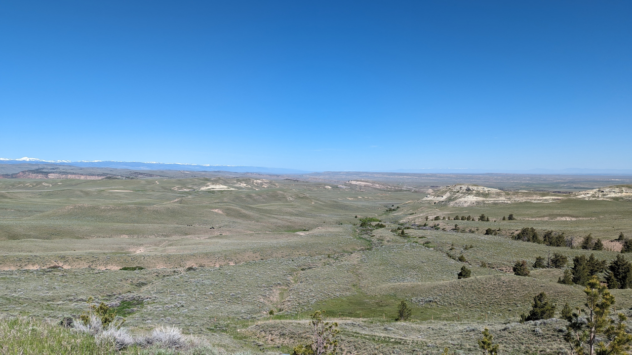 The landscape in Wyoming could sometimes be mistaken for that in Nevada, 10 days and two states ago. Still dry, still lots of sagebrush. Still lots of open land. The difference was subtle, but you noticed it when you spend all day looking at nothing else. It was getting a bit greener as you went further east, which was a welcome change.