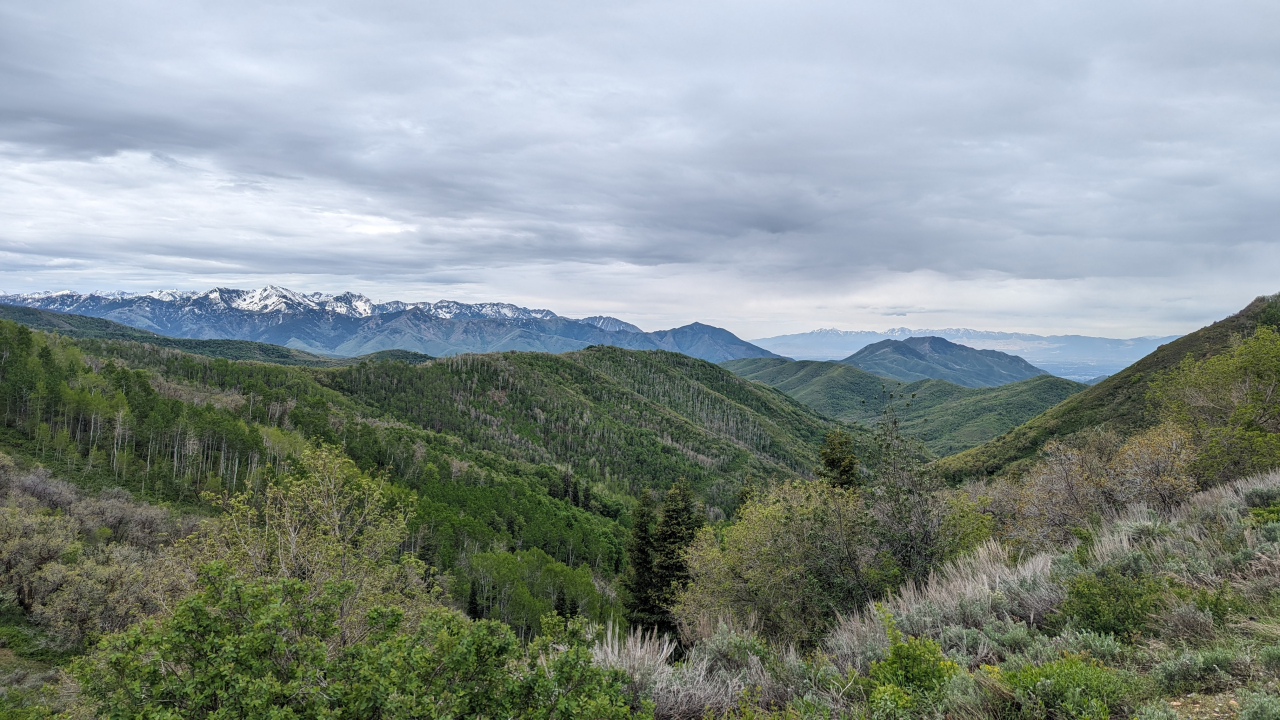 Leaving the Salt Lake valley predictably involved a huge climb. Emigration Canyon Road is a local favorite with road cyclists, for good reason. It’s a gorgeous ride, and there’s almost no traffic. As a result, I had good company on my way up, including two cute gals on full suspension mountain bikes.