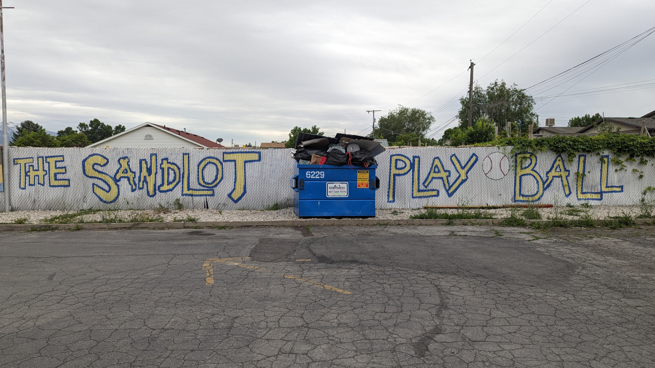 On my way out of Salt Lake, I noticed graffiti in a parking lot referring to The Sandlot. I’d known it was filmed in Salt Lake, but was it specifically here? I looked it up later, and the answer was no, but it was filmed only a few blocks away.