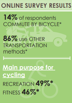 In a similar example, the City of Allen, TX noted in their 2019 Master Plan that their bike paths were primarily used for recreation and fitness, by 49% and 46% (respectively of survey respondents, while only 14% of respondents used the bike paths for transportation. An easily-made mistake would be optimizing the bike paths for recreation, since that’s their primary use.