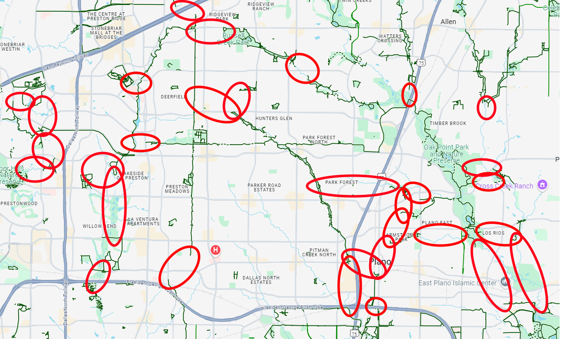 A cursory glance at bike paths in Plano, TX would make it seem as if the area is well-covered by bike paths: